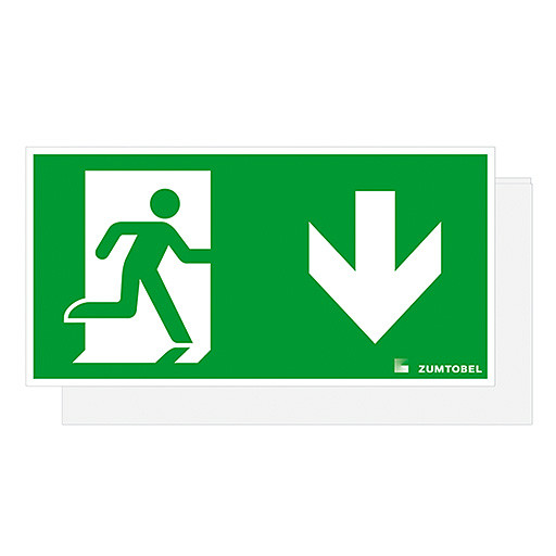Sicherheitszeichen für CROSSIGN 160 MSC/TEC-GP Abdeckung mit Sicherheitszeichen weiß, PC, mit Digitaldruck, Sicherheitszeichen gemäß ISO 7010: 1seitig, Symbol: Rettungsweg/Notausgang. Richtungspfeil nach unten, Abmessung: 322 x 5 x 160 mm, Gewicht: 0,39 kg.