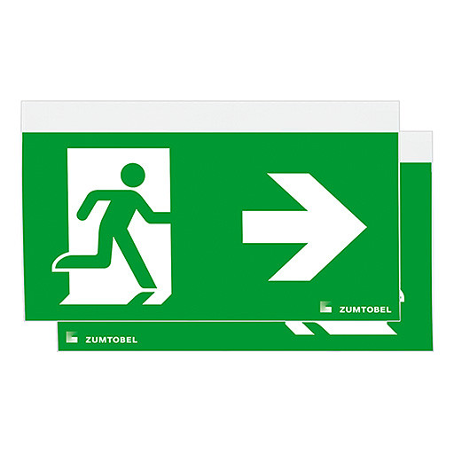 Sicherheitszeichen zur einfachen Montage auf das PURESIGN/COMSIGN 150 MSC/MRC Gehäuse, gleichmäßige Hinterleuchtung des Piktogramms, Leuchtdichte > 500 cd/m² im weißen Bereich, Piktogramm per Digitaldruck auf die Acrylglasplatte aufgebracht, Sicherheitszeichen gemäß ISO 7010: 2seitig, Symbol: Rettungsweg/Notausgang. Richtungspfeil zur Seite, Erkennungsweite gemäß EN 1838: 30 m, Abmessung: 300 x 16 x 188 mm, Gewicht: 0,76 kg.