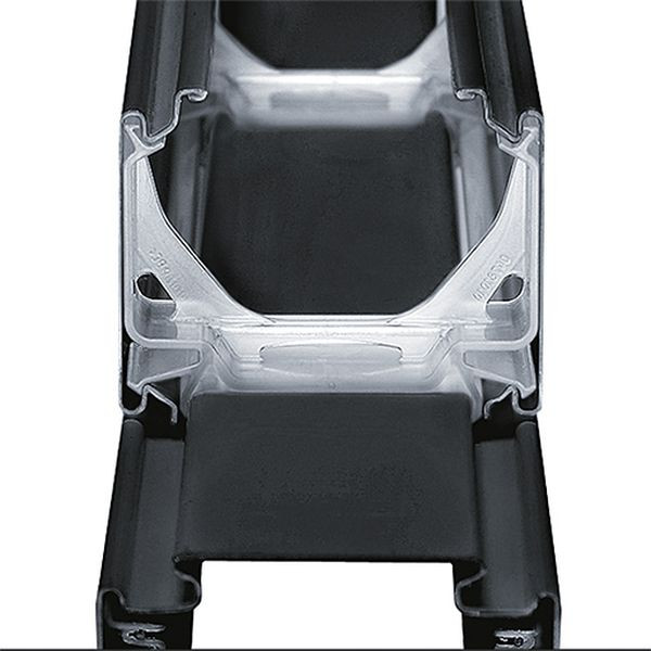 Kabelkanalset aus Aluminium,schwarz pulverbeschichtet mit 4 Seitenteilen und 6 Kabelkanalhalter aus Kunststoff in Polycarbonat. Abmessungen: 3000 x 62 x 47 mm, Gewicht: 2 kg