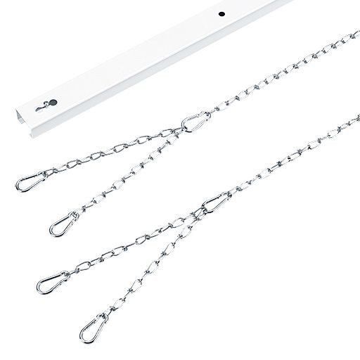 Montagezubehör für Kettenabhängung (1 Punkt) CRAFT II plus in der Größe L. Lieferung bestehend aus Schiene, Kette und Schrauben zur Befestigung. Schiene wird mit einer Schraube an der Decke befestigt und bietet zwei Befestigungspunkte für die Kettenabhängung. Leuchte kann bis zu max. 1,59m von der Decke abgehängt werden. Der Mindestabstand zur Decke beträgt 0,25m.