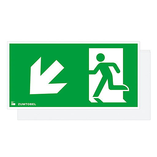Sicherheitszeichen für CROSSIGN 160 MSC/TEC-GP Abdeckung mit Sicherheitszeichen , PC, mit Digitaldruck, Sicherheitszeichen gemäß ISO 7010: 1seitig, Symbol: Rettungsweg/Notausgang. Richtungspfeil zur Seite, Abmessung: 322 x 5 x 160 mm, Gewicht: 0,39 kg.