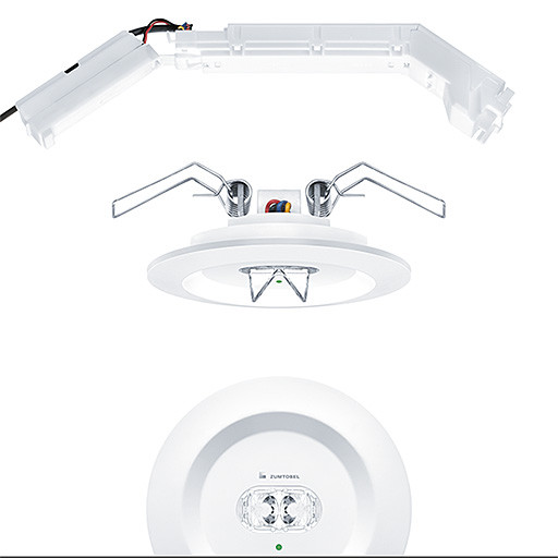 LED Sicherheitsleuchte zur Fluchtwegbeleuchtung mit min. 1 lux gemäß EN 1838, Raumhöhe 2,2 bis 7 m, 2 high power LEDs, neutralweiß 4.000 K, Linse aus Polycarbonat (PC), optimales Thermomanagement mittels Kühlblech, Decken-Einbauleuchte für 68 mm Deckenausschnitt und Deckenstärken von 1-25 mm, werkzeuglose Schnellmontage der Leuchte mittels speziell geformter Haltefedern, werkzeugloser Austausch von Akku und Betriebsgerät, Abdeckring aus Aluminiumdruckguss, pulverbeschichtet, Gehäusefarbe weiß (ähnlich RAL9016), Gerätebox für Deckeneinwurf aus Polypropylen (PP), Leuchte mit Einzelbatterieversorgung für 1 h Notlichtbetrieb in Dauer- oder Bereitschaftsschaltung, automatischer Test (Autotest) durch die Leuchte, optional zentrales Monitoring über DALI, Anzeige des Leuchtenstatus über Status-LED, NFC-Schnittstelle zur Adressierung, Konfiguration und Wartung durch PROset Pen (Artikelnr: 22170290) oder PROset App, Adressierung alternativ auch optisch oder per EZ-Adressierung möglich, Dauerschaltung: +5 °C bis +30 °C, Bereitschaftsschaltung: +5 °C bis +35 °C, Spannungsversorgung: 220-240 V AC (+/- 10 %), 50-60 Hz, Leuchten Leistung: 4,7 W (mit Batterie Schnell-Ladung in Dauerschaltung), typische Anschlussleistung (ohne Batterieladung): 3,5 W in Dauerschaltung /1,1 W in Bereitschaftsschaltung, Bereitschafts- und Dauerschaltung über Jumper sowie NFC-Schnittstelle einstellbar, IP40, SC1, Leuchte halogenfrei und silikonfrei verdrahtet, geeignet zum Einbau in separat zu bestellendes Betoneingießgehäuse, Steckklemmen zur Durchgangsverdrahtung bis zu 2,5 mm², Schlagfestigkeit: IK04, Abmessungen: Durchmesser 85 x 4 mm, Gewicht: 0,33 kg, Robuster, integrierter Akku mit 3-Jahresgarantie. Gültig gemäß Bestimmungen der Herstellergarantie, einsehbar unter https://www.zumtobel.com/media/downloads/Garantiebedingungen_DE.pdf, Akkugarantie ungültig, wenn Installation erst drei (3) Monate nach Lieferung EXW (Incoterms 2010) erfolgt