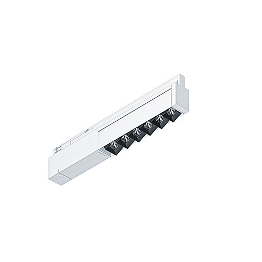 Kompakter, schwenkbarer LED-Strahler mit linear, synchron schwenkbaren Einzellichtköpfen "Synchro-Gimbal", zur flexiblen Akzentbeleuchtung und horizontalen Flächenbeleuchtung mit hoher Brillanz und sehr guter Entblendung, linearer Lichtkopf an der Stromschiene schwenkbar (+/-90°) oder im U- bzw. H-Kanalprofil bzw. deckenbündigem Einbau schwenkbar (+/-25°), mit 6 Einzellichtköpfen linear, synchron schwenkbar (+/-20°) ermöglichen einen rotierenden Lichtkegel, präzise und gleichmäßige Lichtverteilung, sehr gute Entblendung UGR<13, Abblendwinkel 45°, Leuchte mit 3 Phasen Adapter mit Betriebsgerät im Adapter, Trackbox (für 3 Phasen-Stromschiene), Bestückung: 18W LED1700-930, SPOT-Abstrahlcharakteristik, Reflektor: silber mit Deko-Rand schwarz, hochglänzend, Farbwiedergabe Ra > 90, Farbtemperatur 3000 K (warm weiß), Farborttoleranz (initial MacAdam): 2, Leuchten Lichtstrom: 1600 lm, Leuchten Lichtausbeute: 76 lm/W, Lebensdauer: 50000h bei 90% Lichtstrom, mit Betriebsgerät, schaltbare Leuchte, passive Kühlung durch patentierten, innovativen Wärmehaushalt, Strahlergehäuse aus Aluminiumdruckguss, weiß lackiert, Reflektoreinheit aus Polycarbonat (PC) 2-teilig: Kopf aluminiumbesputtert, facettiert hochglänzend / Fuß quadratisch mit Deko-Rand, Leuchte halogenfrei verdrahtet, Leuchten Leistung: 21 W, Netzspannung: 220-240 V / 50/60 Hz , Abmessungen: 398x35x79 mm, Gewicht: 0,67 kg Hinweis: Unterschiedliche Farbkombinationen (Design-Personalisierung) der einzelnen Bauteile als Variante über mySUPERSYSTEM INTEGRAL bestellbar Hinweis: Horizontale und vertikale Wandmontage zulässig, für Punktauslass nicht geeignet!