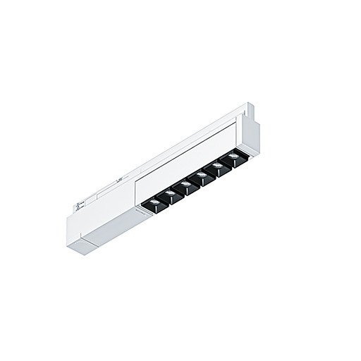 Kompakter, linear schwenkbarer LED-Strahler zur flexiblen Akzentbeleuchtung und horizontalen Flächenbeleuchtung mit hoher Brillanz und sehr guter Entblendung, linearer Lichtkopf an der Stromschiene schwenkbar (+/-90°) oder im U- bzw. H-Kanalprofil bzw. deckenbündigem Einbau schwenkbar (+/-25°), mit 6 miniaturisierten Einzellichtköpfen in linearer Anordnung, präzise und gleichmäßige Lichtverteilung, sehr gute Entblendung UGR<13, Abblendwinkel 45°, Leuchte mit L3 + DALI-Adapter für DALI-Steuerung mit Betriebsgerät im Adapter, Trackbox (für 3 Phasen- / L3 + DALI-Stromschiene), Bestückung: 21W LED2200-940, FLOOD-Abstrahlcharakteristik, Reflektor: silber mit Deko-Rand schwarz, hochglänzend, Farbwiedergabe Ra > 90, Farbtemperatur 4000 K (neutral weiß), Farborttoleranz (initial MacAdam): 2, Leuchten Lichtstrom: 2200 lm, Leuchten Lichtausbeute: 88 lm/W, Lebensdauer: 50000h bei 90% Lichtstrom, mit Betriebsgerät, DALI steuerbare Leuchte (DALI only), passive Kühlung durch innovativen Wärmehaushalt, Strahlergehäuse aus Aluminiumdruckguss, weiß lackiert, Reflektoreinheit aus Polycarbonat (PC) 2-teilig: Kopf aluminiumbesputtert, facettiert hochglänzend / Fuß quadratisch mit Deko-Rand, Leuchte halogenfrei verdrahtet, Leuchten Leistung: 25 W, Netzspannung: 220-240 V / 50/60 Hz , Abmessungen: 398x35x79 mm, Gewicht: 0,65 kg Hinweis: Unterschiedliche Farbkombinationen (Design-Personalisierung) der einzelnen Bauteile als Variante über mySUPERSYSTEM INTEGRAL bestellbar Hinweis: Horizontale und vertikale Wandmontage zulässig, für Punktauslass nicht geeignet!
