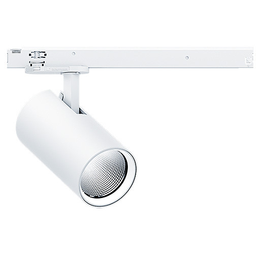 LED-Strahler mit stabilisierter Farbtemperatur, Optimiert für effiziente und leistungsstarke Akzentbeleuchtung in Retail-/ Automotive-Anwendung sowie architektonische Beleuchtung, Leuchte mit 3 Phasen Adapter mit integriertem Konverter InTrack (für 3 Phasen- / L3+DALI-Stromschiene, nur für Deckenmontage), schaltbare Leuchte, Adapter-Farbe weiß, Farbwiedergabe Ra > 80, Farbtemperatur 3000 K (warm weiß), Leuchte mit WIDEFLOOD-Abstrahlcharakteristik 43 °, Farborttoleranz (initial MacAdam): 2, Leuchten Lichtstrom: 5000 lm, Leuchten Lichtausbeute: 122 lm/W, Lebensdauer: 50000h bei 90% Lichtstrom, Leuchten Leistung: 41 W, Netzspannung: 220-240 V / 50/60 Hz, Strahler um 337° drehbar und 90° schwenkbar, Strahlergehäuse aus Aluminiumdruckguss, Oberfläche: weiß Mikrostrukturlack, exzellente Entblendung über Frontring aus Polycarbonat (PC) weiß, Frontring dient zur Aufnahme des Zubehörs (Optisch, Schutzglas, Wabenraster), Spiegelreflektor aus Polycarbonat (PC) aluminiumbesputtert, hochglänzend, irisierungsfrei, Spiegelreflektor als Wechselreflektor ausgelegt, umrüstbar, Abmessungen: 345x115x246 mm, Gewicht: 1,25 kg Wandmontage nicht zulässig, für Punktauslass nicht geeignet