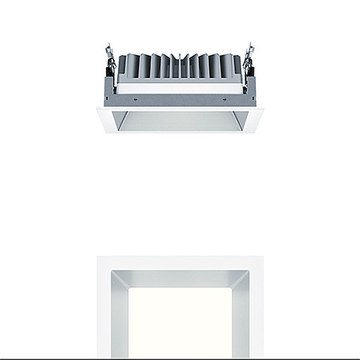 LED Decken-Einbauleuchte (Komplettleuchte), Einsatz bei limitiertem Platz in der Decke: Einbautiefe nur 100mm, LED Leuchte "stableWhite" mit symmetrisch, breitstrahlender Lichtverteilung mit höchster Leuchteneffizienz und optimaler Lichttechnik, Bestückung: LED2500-930, Farbwiedergabe Ra > 90 (R9> 50), Farbtemperatur 3000 K (warm weiß), Farborttoleranz (initial MacAdam): 2, Leuchten Leistung: 19 W, Leuchten Lichtstrom: 2516 lm, Leuchten Lichtausbeute: 132 lm/W, Lebensdauer: 100000h bei 90% Lichtstrom bzw. 50000h bei 95% Lichtstrom, mit separater Vorschaltgeräte-Einheit DALI steuerbare Leuchte (DALI only), hochwertige Reflektoreinheit über Verrastung an modulare LED Lichtkammer befestigt, hocheffiziente LED Lichtkammer integriert im optimierten, passiven Wärmemanagement aus Aluminiumdruckguss, Reflektor:glatt, aluminiumfarben beschichtet, matt, Reflektor/Abdeckrahmen eine Einheit aus hochwertigem, UV-beständigem Polycarbonat (PC), Abdeckrahmen weiß, abnehmbar, Einbaurahmen aus Aluminiumdruckguss, werkzeuglose Schnellmontage der Leuchteneinheit über EASY-CLICK-Verschluss, IP20, Leuchte halogenfrei verdrahtet, Anschluss: 5-polige Steckverbindungsklemme, Durchschleifen möglich, Netzspannung: 220-240 V / 0/50/60 Hz, Zentralbatterietauglich 220V DC , Montage: werkzeuglose Schnellmontage mittels Haltefedern für Deckenstärken von 1-25mm, Deckenausschnitt: 190x190mm, Einbautiefe: 100mm, Gewicht: 1,37 kg Hinweis: Für Office Anwendungen gemäß EN12464 (UGR<19, Reflektortyp aluminiumbesputtert) ist ein zusätzlicher Entblendungsrahmen separat zu bestellen