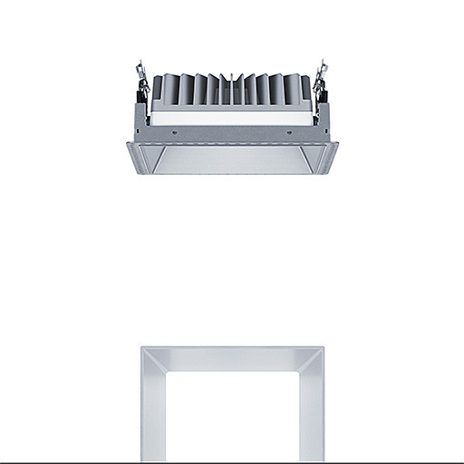 LED Decken-Einbauleuchte ohne Abdeckrahmen "trimless", Einsatz bei limitiertem Platz in der Decke: Einbautiefe nur 100mm, LED Leuchte "tunableWhite", mit dynamischer Farbtemperaturveränderung bei gleichbleibendem Leuchtenlichtstrom über DALI-Signal (DT8 Standard) einstellbar, symmetrisch, breitstrahlende Lichtverteilung mit höchster Leuchteneffizienz und optimaler Lichttechnik, Bestückung: LED1800-927-65, Farbwiedergabe Ra > 90, Farbtemperatur (tunable) 2700-6500 K (warmweiß-neutralweiß-tageslichtlichtweiß), Farborttoleranz (initial MacAdam): 3, Leuchten Leistung: 23 W, Leuchten Lichtstrom: 2000 lm, Leuchten Lichtausbeute: 87 lm/W, Lebensdauer: 50000h bei 80% Lichtstrom, mit separater Vorschaltgeräte-Einheit DALI steuerbare Leuchte (DALI only), Dimmbereich: 1-100%, inklusive "Fade-to Zero", hochwertige Reflektoreinheit über Verrastung an modulare LED Lichtkammer befestigt, hocheffiziente LED Lichtkammer integriert im optimierten, passiven Wärmemanagement aus Aluminiumdruckguss, Reflektor:glatt, aluminiumfarben beschichtet, matt, Reflektor aus hochwertigem, UV-beständigem Polycarbonat (PC), werkzeuglose Schnellmontage der Leuchteneinheit über EASY-CLICK-Verschluss, IP44_IP20, Leuchte halogenfrei verdrahtet, Anschluss: 5-polige Steckverbindungsklemme, Durchschleifen möglich, Netzspannung: 220-240 V / 0/50/60 Hz, Zentralbatterietauglich 220V DC , Montage: werkzeuglose Schnellmontage mittels Haltefedern für Deckenstärken von 1-25mm, Deckenausschnitt: 190x190mm, Einbautiefe: 100mm, Gewicht: 1,24 kg Hinweis: Aufnahmerahmen (Planarrahmen) zum deckenbündigen Einbau der Leuchte ist separat zu bestellen (siehe Zubehör), für Office Anwendungen gemäß EN12464 (UGR<19, Reflektortyp aluminiumbesputtert) ist ein zusätzlicher Entblendungsrahmen separat zu bestellen