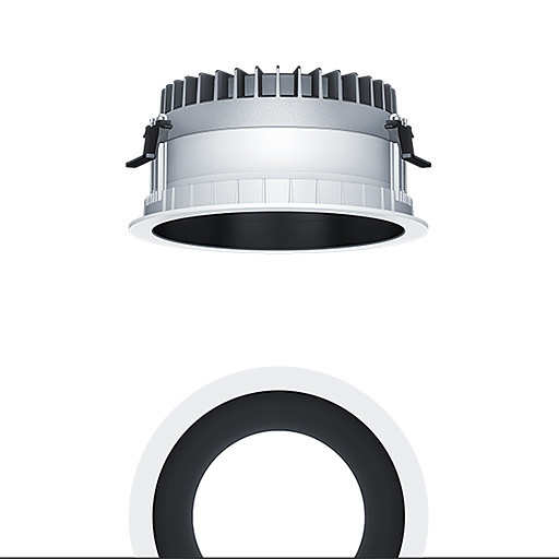 LED Decken-Einbauleuchte (Komplettleuchte) R200, symmetrisch, breitstrahlender Lichtverteilung (77 °), höchste Leuchteneffizienz und eine optimale Downlight Lichttechnik, hohe Nachhaltigkeit aufgrund durchgängigen, maximal- modularen Aufbau und austauschbaren Komponenten, Austauschbares LED-Modul, Farbwiedergabe Ra > 80, Farbtemperatur 3000 K, Farborttoleranz (initial MacAdam): 2, Leuchten Leistung: 36,6 W, Leuchten Lichtstrom: 3290 lm, Leuchten Lichtausbeute: 90 lm/W, Mittlere Bemessungslebensdauer: L85 100000 h bei 25 °C + L90 50000 h bei 25 °C, mit separaten, steckbaren LED-Konverter, DALI steuerbare Leuchte (DALI only) mit DC-Funktion, einstellbar 1-100 %, Notstromlevel auf 15% voreingestellt, DALI konfigurierbar, SwitchDIM-kompatibel, hochwertige Reflektoreinheit über Bajonettverschluss an modularer LED-Lichtkammer arretiert, hocheffiziente LED Lichtkammer integriert im optimierten, passiven Wärmemanagement aus recycelten Aluminiumdruckguss, Reflektor/Abdeckring aus hochwertigem, UV-beständigem Polycarbonat (PC), Reflektor: schwarz lackiert, Abdeckring: weiß, Einbauring aus Polycarbonat (PC), weiß, Schutzart: IP54_IP20, Leuchte halogenfrei verdrahtet, Anschluss: 5-polige Steckverbindungsklemme, Durchschleifen möglich, Netzspannung: 220-240 V / 0/50/60 Hz, Zentralbatterietauglich 220-240V DC, Montage: werkzeuglose Schnellmontage mittels Anti-Rutsch-Haltefedern für Deckenstärken von 1-40mm (je nach Leuchtenvariante) aufgrund austauschbarer Haltestege, werkzeuglose Schnellmontage der Leuchteneinheit mittels Bajonettverschluss, Deckenausschnitt: 200mm, Einbautiefe: 120mm, Gewicht: 1,12 kg