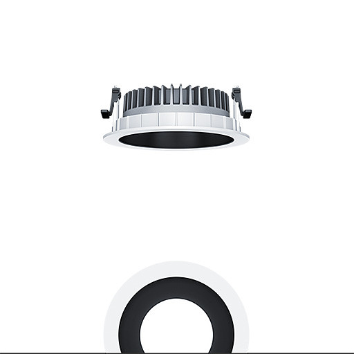 LED Decken-Einbauleuchte (Komplettleuchte) R150, symmetrisch, breitstrahlender Lichtverteilung (90 °), höchste Leuchteneffizienz und eine optimale Downlight Lichttechnik, hohe Nachhaltigkeit aufgrund durchgängigen, maximal- modularen Aufbau und austauschbaren Komponenten, Austauschbares LED-Modul, Farbwiedergabe Ra > 90 (R9> 50), Farbtemperatur 3000 K, Farborttoleranz (initial MacAdam): 2, Leuchten Leistung: 21,2 W, Leuchten Lichtstrom: 2840 lm, Leuchten Lichtausbeute: 134 lm/W, Mittlere Bemessungslebensdauer: L90 100000 h bei 25 °C + L95 50000 h bei 25 °C, mit separaten, steckbaren LED-Konverter, schaltbare Leuchte, hochwertige Reflektoreinheit über Bajonettverschluss an modularer LED-Lichtkammer arretiert, hocheffiziente LED Lichtkammer integriert im optimierten, passiven Wärmemanagement aus recycelten Aluminiumdruckguss, Reflektor/Abdeckring aus hochwertigem, UV-beständigem Polycarbonat (PC), Reflektor: schwarz lackiert, Abdeckring: weiß, Einbauring aus Polycarbonat (PC), weiß, Schutzart: IP54_IP20, Leuchte halogenfrei verdrahtet, Anschluss: 3-polige Steckverbindungsklemme, Durchschleifen möglich, Netzspannung: 220-240 V / 0/50/60 Hz, Zentralbatterietauglich 220-240V DC, Montage: werkzeuglose Schnellmontage mittels Anti-Rutsch-Haltefedern für Deckenstärken von 1-25mm (je nach Leuchtenvariante) aufgrund austauschbarer Haltestege, werkzeuglose Schnellmontage der Leuchteneinheit mittels Bajonettverschluss, Deckenausschnitt: 150mm, Einbautiefe: 70mm, Gewicht: 0,65 kg Geringe Einbautiefe bei Einsatz mit limitiertem Platz in der Decke.