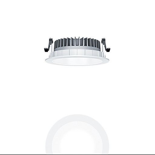 LED Decken-Einbauleuchte (Komplettleuchte) R150, symmetrisch, breitstrahlender Lichtverteilung (80 °), höchste Leuchteneffizienz und eine optimale Downlight Lichttechnik, hohe Nachhaltigkeit aufgrund durchgängigen, maximal- modularen Aufbau und austauschbaren Komponenten, Austauschbares LED-Modul, Farbwiedergabe Ra > 90 (R9> 50), Farbtemperatur 3000 K, Farborttoleranz (initial MacAdam): 2, Leuchten Leistung: 21,2 W, Leuchten Lichtstrom: 3000 lm, Leuchten Lichtausbeute: 142 lm/W, Mittlere Bemessungslebensdauer: L90 100000 h bei 25 °C + L95 50000 h bei 25 °C, mit separaten, steckbaren LED-Konverter, DALI steuerbare Leuchte (DALI only), hochwertige Reflektoreinheit über Bajonettverschluss an modularer LED-Lichtkammer arretiert, hocheffiziente LED Lichtkammer integriert im optimierten, passiven Wärmemanagement aus recycelten Aluminiumdruckguss, Reflektor/Abdeckring aus hochwertigem, UV-beständigem Polycarbonat (PC), Reflektor: weiß lackiert, Abdeckring: weiß, Einbauring aus Polycarbonat (PC), weiß, Schutzart: IP54_IP20, Leuchte halogenfrei verdrahtet, Anschluss: 3-polige Steckverbindungsklemme, Durchschleifen möglich, Netzspannung: 220-240 V / 0/50/60 Hz, Zentralbatterietauglich 220-240V DC, Montage: werkzeuglose Schnellmontage mittels Anti-Rutsch-Haltefedern für Deckenstärken von 1-25mm (je nach Leuchtenvariante) aufgrund austauschbarer Haltestege, werkzeuglose Schnellmontage der Leuchteneinheit mittels Bajonettverschluss, Deckenausschnitt: 150mm, Einbautiefe: 70mm, Gewicht: 0,68 kg Geringe Einbautiefe bei Einsatz mit limitiertem Platz in der Decke.