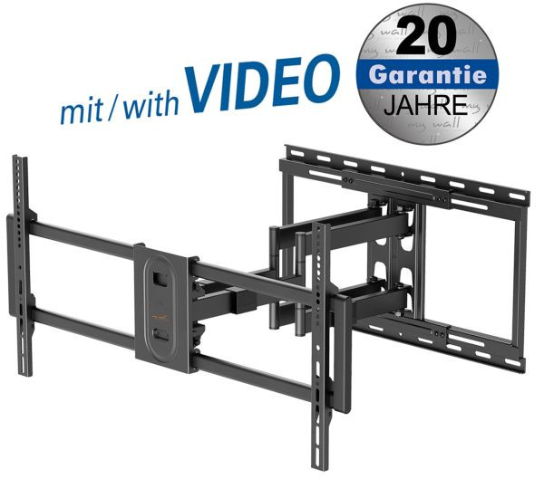 Mit der flexibel einstellbaren TV Wandhalterung richten Sie ihren großen Fernseher bis zu 100 Zoll (254 cm) optimal aus. Die Wandhalterung für TV kann seitlich geschwenkt, vor und zurückgeneigt und horizontal ausgerichtet werden. Zusätzlich lässt sich der Wandabstand variabel einstellen und macht die TV Wandhalterung dadurch in jedem Raum zur perfekten Wahl. Um den Fernseher nachträglich mittig ausrichten zu können, lässt sich der Fernseher seitlich verschieben. Die schwenkbare TV Wandhalterung wurde für große Fernseher von 43" - 100" (109 - 254 cm) entworfen und trägt ein Gewicht von bis zu 80 kg absolut mühelos. Mit dem integrierten Kabelmanagement sind alle notwendigen Kabel schnell und einfach verlegt. Verabschieden Sie sich von losen hängenden Kabeln und genießen Sie ein ordentliches und sauberes Gesamtbild. Maximaler Halt für maximalen Genuss ?? Für große Fernseher bis zu 100 Zoll ?? Bis zu 80 kg belastbar ??Schwenkbar, neigbar, horizontal anpassbar und seitlich verschiebbar ?? Variabler Wandabstand ?? Integriertes Kabelmanagement Technische Details: Vollbeweglicher Wandhalter für Flachbildschirme 43“ - 100“ (109 - 254 cm) Belastung bis zu 80 kg VESA 200x200,300x200,400x200,300x300, 400x300,400x400,600x400,800x400 Wandabstand: 90-635 mm Seitlich drehbar 120° Neigung: -10° bis +5° Horizontal anpassbar: +/-3° Mit Kabelmanagement Inkl. Montageanleitung und Befestigungsmaterial
